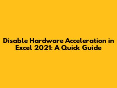 Disable Hardware Acceleration In Excel 2021: A Quick Guide