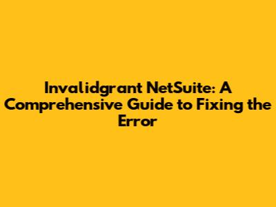 Fixing The NetSuite Invalidgrant Error: A Comprehensive Guide
