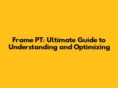 Frame PT: Ultimate Guide To Understanding And Optimizing