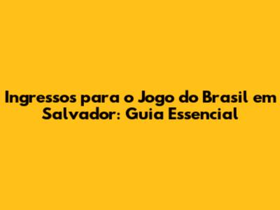 Ingressos E Jogo Do Brasil Em Salvador: Guia Completo