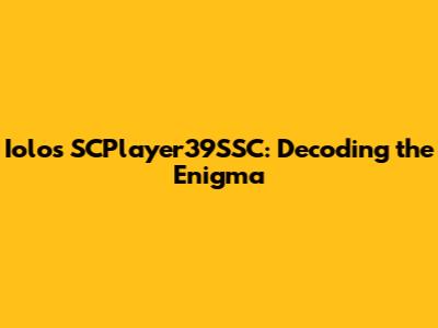 Iolos SCPlayer39SSC: Everything You Need To Know