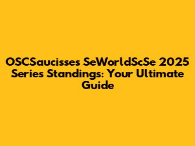 OSCSaucisses SeWorldScSe 2025 Series Standings: Your Guide