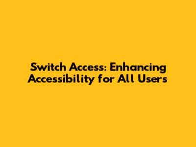 Switch Access: Enhancing Accessibility For All Users