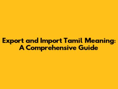 Tamil Meaning: Export And Import Explained